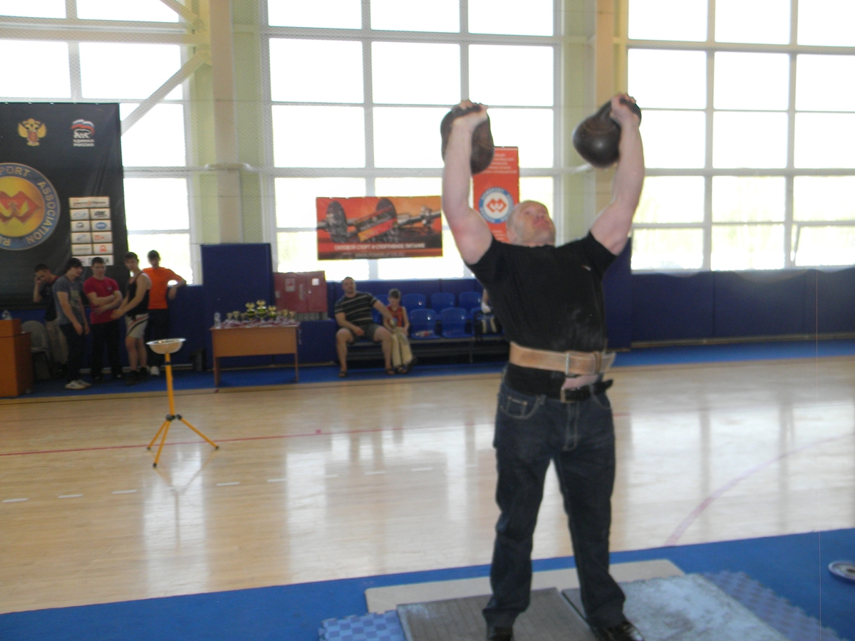 В строгом жиме двух весовых двухпудовых гирь, изготовленных в 1886 году из Брянского музея пауэрлифтинга и русского силового спорта, победил Александр Смирнов (Людиново), выжавший их 30 раз !
