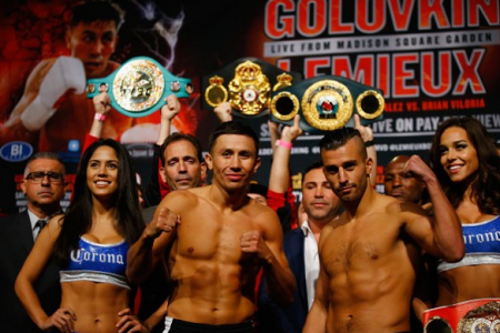 Видеосюжет о взвешивании Геннадия Головкина и Давида Лемье