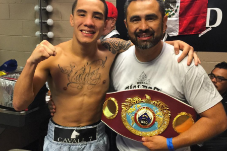 Американец и его тренер Мануэль Роблес после победы над аргентинцем .