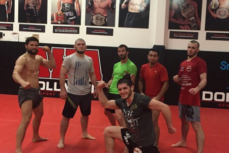 Чемпион UFC в легкой весовой категории Хабиб Нурмагомедов настаивает на проведении поединка с Тони Фергюсоном, который должен состояться 18 апреля, но не имеет официального места проведения после введения запрета на массовые мероприятия по всей территории США. Хабиб продолжает тренировки, о чем рассказал в совместной прямой трансляции в инстаграме со своим менеджером Али Абдельазизом.