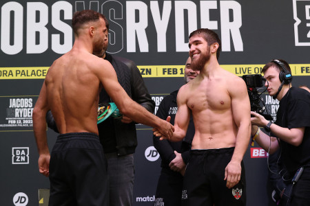 35-летний Дэниэл Джейкобс (75,7 кг на взвешивании) поднялся во второй средний вес после поражения от в мае 2019 года, но он пропустил весь прошлый год, и сейчас готов вернуться к борьбе за титул чемпиона мира во второй весовой категории.